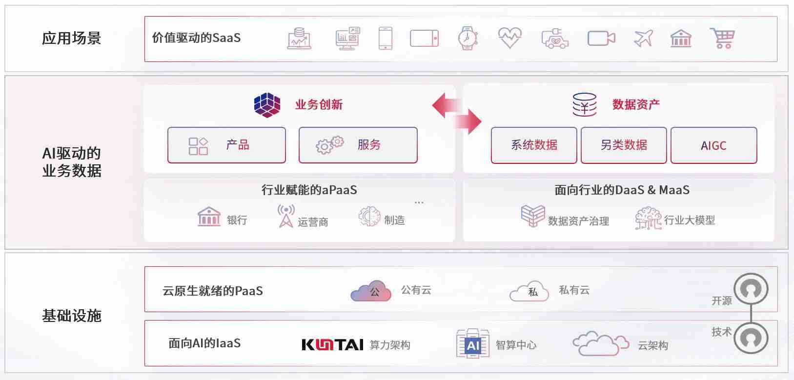 数字时代,,围绕企业数字化转型的关键要素,,Z6尊龙数码开创性的提出数云融合战略和技术体系框架,,着力在云原生、、、数字原生、、、AI原生和信创产业上架构产品和服务能力,,,,为处在不同数字化转型阶段的快消零售、、汽车、、、金融、、、、医疗、、政企、、、教育、、、、运营商等行业客户提供泛在的敏捷IT能力和融合的数据驱动能力,,,,构建跨界融合创新的数字业务场景和新业务模式,,,,助力企业级客户建立面向未来的核心能力和竞争优势,,,全面推动社会的数字化、、、、智能化转型升级。。